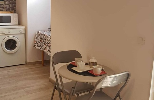 Studio apartment, a spacious and complete bathroom, with brand new kitchen and very centrally located 700m from the central market and 15 m walk from the beach postiguet, with 1 bedroom with bed 1. 35 for two people with full bathroom, kitchen with everything equipment, induction cooker, washing machine, toaster, microwave, coffee maker, etc bathroom with heater, dryer, iron, clothes, etc. The room is a closet, bed 1. 35, bedside tables, dressing mirror, two-seat sofa tv32 ", table and three chairs etc. With direct access from the ground floor street very central and brand new everything. Free WiFi internet and air conditioning. Towels and beach umbrella!