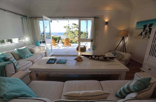 Upstairs is a fantastic open lounge area with smart TV, Wi-Fi, and wonderfully comfortable lounges to sit back and watch a movie or hunker down with a good book. The upstairs living area opens onto a large deck with outdoor dining and electric BBQ, which will become one of your favourite places to relax. Sun-drenched windows add to the happy, summery feel and will make you want to run down to the beach for a swim as soon as you arrive, or grab a deck chair and enjoy watching the world (or whales) go by.