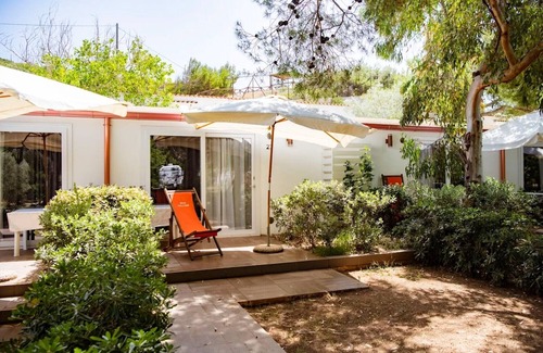 The Villette Mare are the newest and most modern solutions in the village, ideal for those of you seeking comfort and style just a few steps from the sea. Each villa, about 39 m², can accommodate up to 4 people and is located on the ground floor. The interiors are bright and well maintained, featuring a living area with kitchenette, double bed and sofa bed, as well as a private bathroom, air conditioning, TV and Wi-Fi connection. Outside, a private patio allows you to relax in peace. Beach service, air conditioning and bed linen are not included, but are available on request for an extra charge.