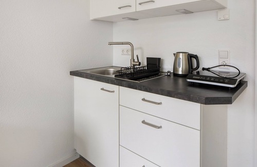 The studio apartment Tunsel with step-free interior in Bad Krozingen is the ideal accommodation for a relaxing stay with your loved ones. The 21 m² accommodation consists of a combined living and sleeping area with a 140x200 cm bed, a kitchen, and a bathroom, and can accommodate up to 2 people. Amenities also include Wi-Fi and a TV.