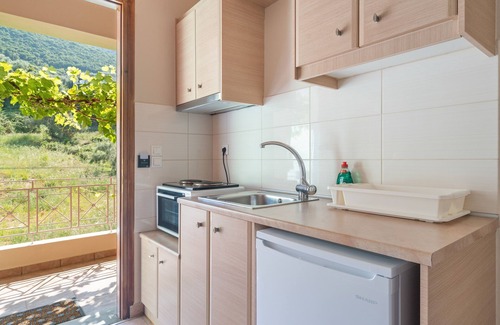 Several tavernas and a bus station are at a distance of 50 m. A mini market is 800 m away and Lefkada Town is 8 km away. The port of Nydri is within 4 km.