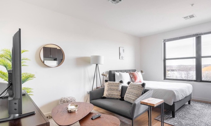 Somerville is a youthful and vibrant suburb of Boston, home to Harvard and many Boston-area attractions. This gorgeous studio in the Assembly Row neighborhood is close to great restaurants like Totto Ramen, Southern Kin Cookhouse, and Earls Kitchen + Bar as well as convenient spots like the Assembly Row shopping center and Assembly Square (featuring Trader Joe's), all within walking distance. Nearby green spaces include Sylvester Baxter Riverfront Park and Draw Seven State Park. With the Assembly subway station just a few blocks away, Boston is within easy reach, with hotspots like the New England Aquarium, Chinatown, the Museum of Science, and the Museum of Fine Arts accessible from the Orange Line. During your stay, you'll love this apartment's warm, elegant style, newly-renovated kitchen, and on-site laundry.