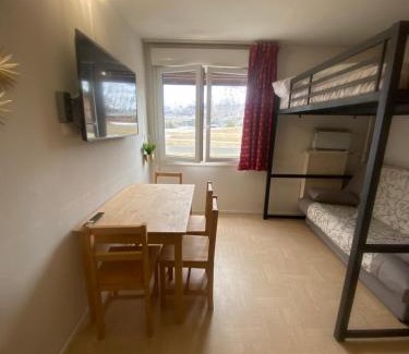 Studio au pied des pistes offers accommodations in Le Dévoluy, a 4-minute walk from Dévoluy. The apartment is composed of 1 separate bedroom, a living room, a fully equipped kitchenette, and 1 bathroom. A flat-screen TV is offered. The accommodation is non-smoking. Alpes–Isère Airport is 86 miles from the property.