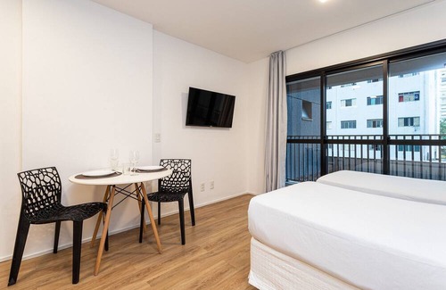 This nice studio with 31m2, located in the heart of São Paulo is the perfect combination between practicality and comfort in one of the most connected areas in São Paulo. The apartment is functional and has a full kitchen and air-conditioning. The building is modern and has parking, swimming pool, gym, laundry and sauna that you can enjoy during your stay. You will be a few meters from República subway station and next door with easy access to Consolação avenue.