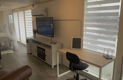 Our Airbnb has is a studio. All the must-haves like beds, pillows, bedding, lots of towels, full kitchen, air conditioning and heating, full closets, TV’s with Direct TV in the small Living Room are loaded with all the movie Chanels. We have WiFi, washer and dryers just outside the unit.