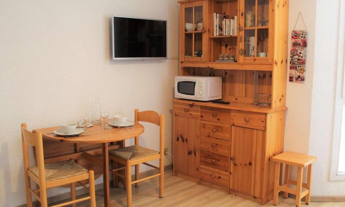 Studio cosy pour 2 à Vars Les Claux, proche des pistes et commerces - FR-1-330B-116 is located in Vars, just 30 miles from Col de la Bonette and 30 miles from Col de Restefond. The property is around a few steps from La Forêt Blanche, 23 miles from Sauze Super Sauze, and 28 miles from Espace Lumière. Serre Chevalier is 30 miles from the apartment. The property includes a living room with a TV. There is a dining area and a kitchen complete with a dishwasher, an oven, and a microwave. For added privacy, the accommodation features a private entrance. Ski storage space is available on-site and skiing can be enjoyed close to the apartment.