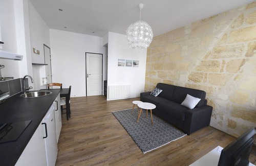 Boasting an excellent location, this pretty studio is part of a small building in typical Bordeaux stone completely renovated. This charming fully equipped luxury studio is perfect for couples or single person. It allows you to stay pleasantly in the heart of Bordeaux. It has been thought and tastefully decorated to make you as pleasant and practical as possible during your stay. Located at the foot of the tram stop "Tauzia", Ste Croix square and St Jean train station are within five minutes walk and all amenities. Two secure parking spaces are available on request and subject to availability.