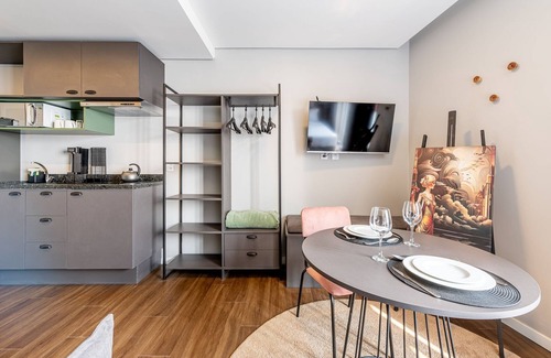 Discover the comfort and convenience of staying in a space designed to make your stay unforgettable. This carefully planned 32m² apartment offers a fully equipped kitchen with a refrigerator, microwave, induction cooktop, and all the utensils you need to prepare your meals with ease, whether it's a quick breakfast or a special dinner. The living area includes a sofa and a TV for your entertainment, plus a table for two, perfect for working or enjoying your meals peacefully.