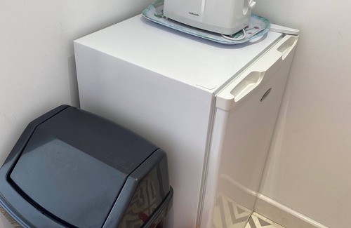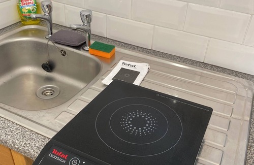 There is a fully equipped kitchenette with fridge, white microwave and toaster etc. Modern portable induction hob which is stored in the cupboard.