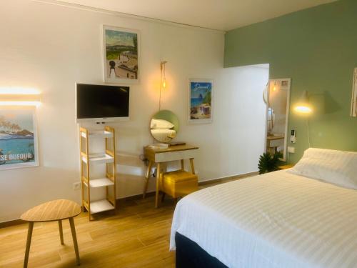Studio Fresh&Cosy Trois-Ilets - 3 étoiles-Hotel Carayou offers accommodations in Les Trois-Îlets, a 7-minute walk from Anse Mitan and 1.7 miles from Anse a l'Ane Beach. This beachfront property offers access to a balcony, free private parking, and free Wifi. Guests can use a bar. Offering a terrace with garden views, this apartment also has a flat-screen TV, a fully equipped kitchen and 1 bathroom with a shower, and a hair dryer. The accommodation is non-smoking. A year-round outdoor pool and a private beach area can be found at the apartment, along with a garden. Martinique Aime Cesaire International Airport is 16 miles away.