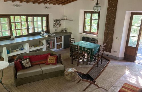Restored from the ruin of a typical Tuscan farmhouse, Podere Scopeto sits high on a hilltop at 600 meter above sea-level (which means summer nights are just perfect outside). The Main House of Podere Scopeto sleeps 10 and the Studio (called the Cappana) is about 60 m away and sleeps 2. The Main House and the Cappana can be rented seperately or together, for a total of 12 guests.
