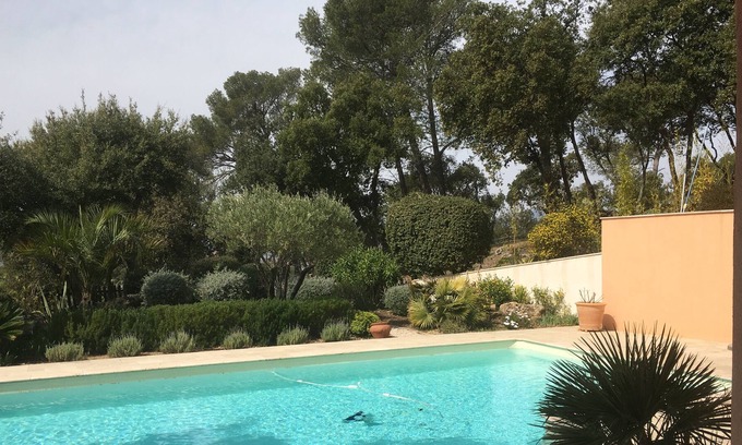 The studio is on top of our house, it is accessible by a staircase which arrives on a terrace of 25 m2 with a magical view on the Massif des Maures. It is totally independent with a free visitor parking. To go to the swimming pool from the studio you pass by the wood, the songs of the birds and the cicadas accompany you, quietness and sight are present for a stay at 17 km from the sea and its effervescence.