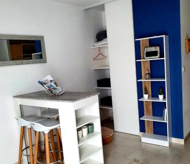 Studio presqu'île Fouras proche de la plage parking privé is located in Fouras, just a 15-minute walk from Plage Nord and 15 miles from La Rochelle Train Station. This beachfront property offers access to a balcony and free private parking. Outdoor seating is also available at the apartment. With free Wifi, this apartment offers a cable flat-screen TV, a washing machine, and a fully equipped kitchen with an oven and microwave. The unit at the property features a bath and a dressing room. This apartment is non-smoking and soundproof. A mini-market is available at the apartment. Guests at studio presqu'île Fouras proche de la plage parking privé can enjoy windsurfing and fishing nearby, or make the most of the sun terrace. L'Espace Encan is 16 miles from the accommodation, while Exhibition Park of La Rochelle is 17 miles away. La Rochelle - Île de Ré Airport is 20 miles from the property.