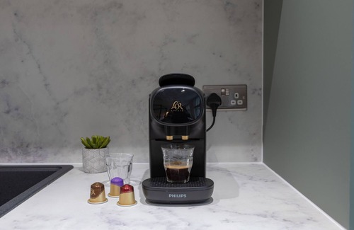 Each boutique apartment has it's own entrance lobby, bathroom with large walk in rain shower and complimentary premium organic toiletries. Enjoy the best sleep in our UK hand crafted king sized four poster and upholstered beds and super comfy pocket sprung mattresses. Full sized kitchens have all the standard integrated cooking appliances as well as microwave, dishwasher, washer-dryer and L'OR Barista coffee machines with complimentary coffee pods.
