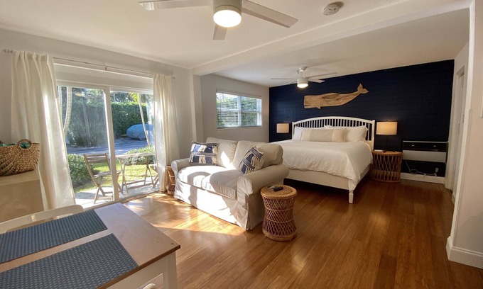The studio has everything you need during your stay in West Palm Beach. The unit has a king bed, walk-in closet, loveseat couch, tv, dining table for two, fully stocked kitchen, and a newly renovated bathroom. In front of the studio, there is a patio with outdoor seating. We have high speed wifi and usb chargers at every bedside. If you have a young child traveling with you, let us know and we can try to accommodate.