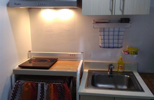 A studio-type unit with one double-size bed with single-bed pull-out. It is situated along Aurora Blvd, Corner Balete Drive, Quezon City, Fees include use of amenities such as free use of condominium amenities and kitchen utensils and appliances. I also provide basic toiletries which include soap, shampoo, and toilet paper. Hair dryer is available upon request. There is no TV and WIFI connection in the unit since no one's regularly occupying it.