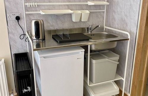 The living space is a self-contained studio room with a mini-kitchen and ensuite bathroom. Towels and linen supplied.