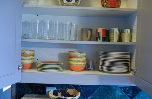 This studio comes with a fully furnished kitchenette (stove, microwave, mini-refrigerator, coffeemaker, silverware - pots and pans/dishes), a comfy queen mattress and even a full bath with Jacuzzi tub!
