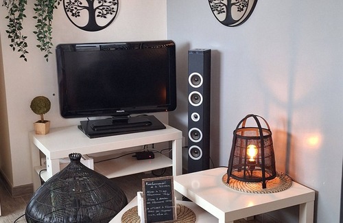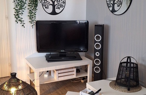 Studio with private patio is located in Villeneuve-les-Beziers. Studio with private patio provides accommodation, featuring TV, Wellness Facilities, Fireplace/Heating, among other amenities. This Apartment features TV, Wellness Facilities, Fireplace/Heating, to make your stay a comfortable one.