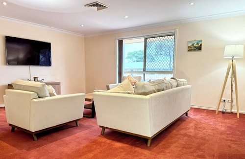 This beautiful brick home is just everything you need for a quick stopover or a long term workers nest. Professionally styled to suit an impeccable standard of accommodation for holiday makers to company directors, it has it all; from a Breville Nespresso Vertuo with supplied coffee pods & milk frother to 65" 4k Samsung TV with Netflix -spend the night or the week, & see it for yourself! The house contains 2 bedrooms AND 2 full bathrooms, so would suit a company wanting 1 house for 2 guests.