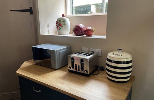 There is one bathroom, which has a toilet and sink and a walk-in shower. Quirky cottage dating back to 1654 with exposed original beams and log burner, the cottage was initially an old farmers cottage and then the servants quarters to the main Manor House from 1844. Drinks package is included to get your stay started including tea , coffee , sugar , water , milk also Linen and towels are all included to make your stay more enjoyable.