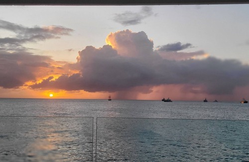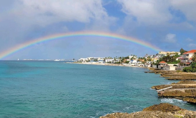 Our oceanfront in Pelican Key/Simpson Bay, 2 bedroom, 2 bathroom private villa is a short walk to great shops, restaurants, casinos, beaches, restaurants, and nightlife on the Dutch side of the island. This spacious 2200 sq. ft home with a 450 sq. ft private deck overlooking the ocean was completely renovated in 2022. Everything is new from the flooring to the furniture, appliances, and decor. Enjoy pool access, parking, and an unobstructed ocean view. Enjoy a full, modern kitchen, dining room, and living room with a sleeper sofa/couch and multiple A/C units. Prices vary depending on season.