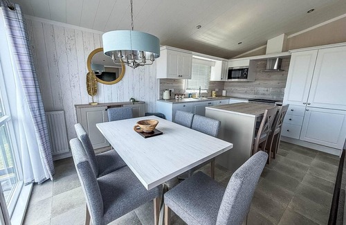 3 bed lodge, sleeps 6. With large decking area, unlimited Wi-Fi, double glazing and central heating. Platinum-Deluxe rated.