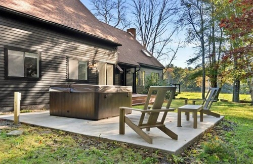 Escape to the highlands of the Berkshires on this peaceful, 4-acre lot 10-min to skiing at Catamount and 10-min to dining and restaurants in Great Barrington. The home is newly renovated and thoughtfully appointed with 6 bedrooms, a great room with TV and fireplace, basement TV/game room, deck overlooking the rolling grounds, and a hot tub on the back side of the house. There are 4 bedrooms on the ground floor and 2 in the second floor, offering space for the whole extended family.