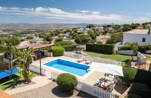 Stunning Andalusian villa for up to 11 people with private garden, heated pool and chill out area all set within 1500m2 of landscaped gardens. The property, located on a hillside with incredible views over the Guadalhorce valley, is made up of the main house (4 bedrooms, 3 bathrooms) and a separate 1 bedroom garden apartment with en suite bathroom. This amazing villa is situated only a 20 minute drive from Malaga Airport.