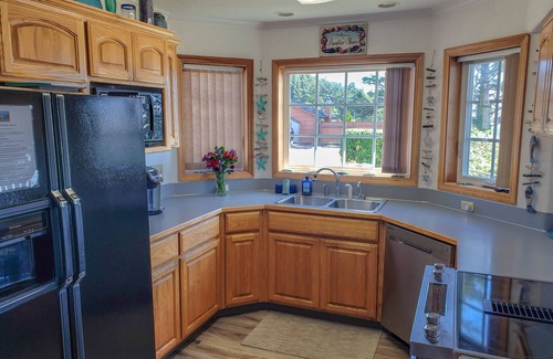 Whether it's a sunny summer weekend or a cold stormy winter day, this location on Netarts Bay offers a comfortable interior for relaxing at the coast. There's a spot for everyone in the living room to get warm in front of the wood burning fireplace, settle back and watch DVDs or cable on the flat screen TV, or just curl up with a good book. One of the sofas is also a sleeper, so you'll have more sleeping options at night.