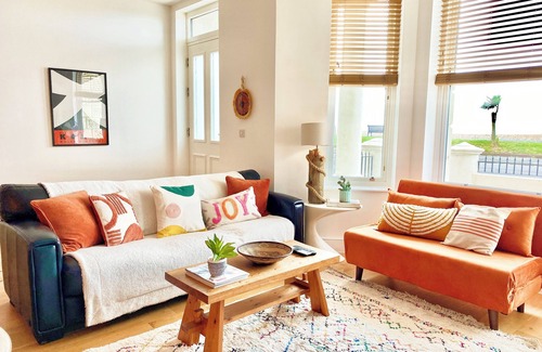 Relax & chill in this stunning, Ground Floor Beachfront apartment with sea views that sleeps 6. Stroll along the pier, watch a show or a film and indulge in lovely restaurants, bars and cafes nearby or simply relax in the contemporary, cosy open-plan interior with its own sun patio.