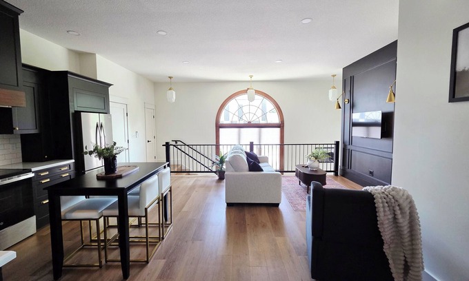 Welcome to The Church Suite on Elm at Sanctuary Housing, a beautifully renovated apartment within a former church, now transformed into a private, stylish 2-bedroom getaway. Located in the heart of charming Bluffton, Ohio, this unique stay blends historic character with modern comforts—ideal for couples, families, friends, work travel or anyone looking for a memorable stay.