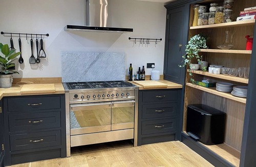 The well-equipped kitchen has everything you need for self-catering. A spacious fridge-freezer can handle a week’s groceries, while the six-burner stove is perfect for cooking large family meals. For inspiration, you’ll find a selection of cookbooks on hand.
