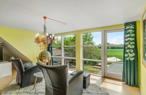 The inviting house welcomes you in a beautiful location surrounded by meadows and forests. The bright rooms with exciting color accents, well-kept wooden floors and stylish furniture create a cozy setting where you can leave everyday life far behind. Several cozy seating areas invite you to spend your free time comfortably. Curl up on the sofa with a movie or games and enjoy the vacation evenings while chatting until late.