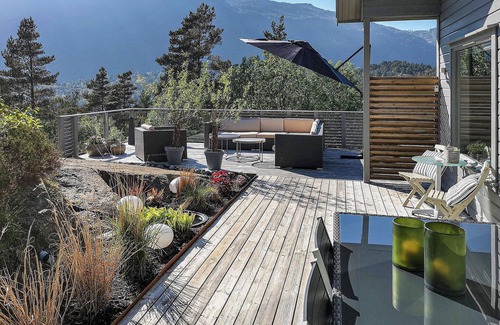 Enjoy relaxing days on the large terrace with good garden furniture and barbecue or try your luck at fishing. Short distance to the boat and a shed for cleaning and filleting the fish. A boat can be hired and the fjord is sheltered and windless.