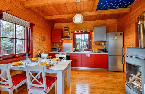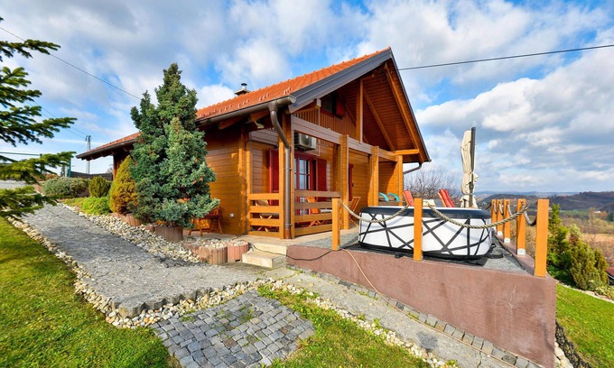 Not far from Zagreb is this beautiful wooden house, surrounded by a beautiful garden with stunning views of the surrounding hills. Relax with a hydromassage with a glass of wine in hand on a beautiful terrace, perfect for soaking up some sun rays. The interior of the house is equally homey with lots of wood paneling and fireplace, and is perfect for cozy hours on bad weather days.