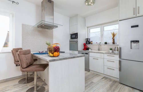 You are located in a suburb of the beautiful city of Pula. The nearest beaches are only a few minutes away by car. Jump into the refreshing water or stroll through the center of the city, which has several shopping opportunities and a rich gastronomy to offer. Also visit the sights such as the magnificent amphitheater, the August Temple or the Sergier Arch. If you prefer to experience more nature, go to Fazana, which has beautiful sandy beaches and bays to offer or discover the interior of Istria. Here, nature lovers will get their money's worth with many hiking opportunities.