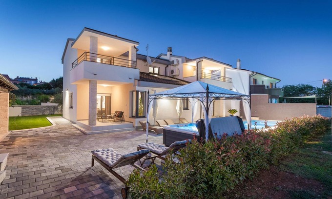 Best-rates for the Stunning home in Stinjan starts from $371 per night with includes TV, View, Barbecue/Outdoor Cooking, Child Friendly, Internet, Pet Friendly, Oceanfront, Wellness Facilities, Kitchen, Laundry, Pool, Ocean View, Parking, Private Pool, Security/Safety, Fireplace/Heating, Hot Tub With all other amenities. Float Homes offers a wide range of floating homes, houseboats, and water chalets, ensuring each traveler finds their ideal water escape, whether planning a water getaway, a family vacation, or a pet-friendly retreat with the whole group.