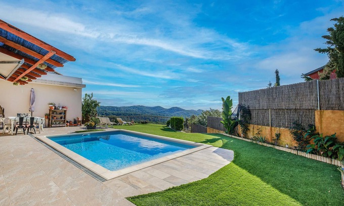 This beautiful holiday home in Tordera impresses with a wonderful view over the green landscape to the sea. The bright and comfortable furnishings create a family-friendly ambience that will make you feel right at home. Start your day with a coffee on the terrace or a dip in the swimming pool. The spacious outdoor areas invite you to sunbathe, play and eat together - ideal for relaxing hours with your loved ones.