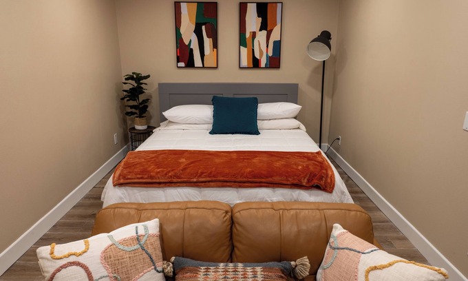 Bedroom 2: King Bed with Roku TV and additional living space.