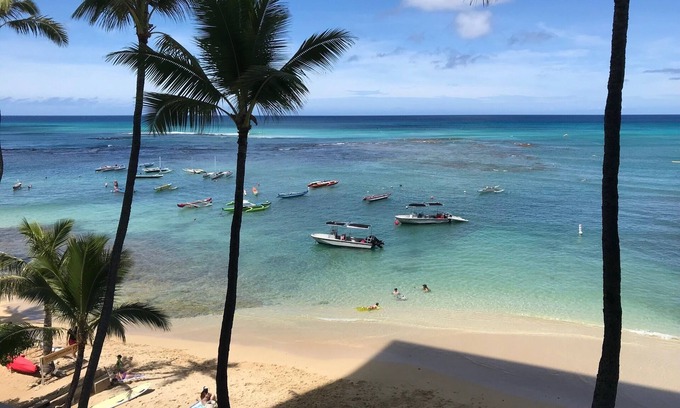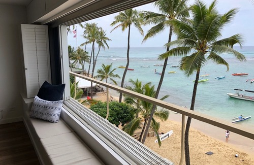 Fall asleep to lapping waves on a quiet corner of Waikiki in this beautiful modern haven. Located on the sought after 3rd floor of the famed Colony Surf on the Gold Coast end of Waikiki. Clean and modern remodel in 2018: all new cabinets, appliances, furniture and fixtures, high speed WIFI, 55" big screen TV, gas range, microwave, large refrigerator with ice maker. Sparkling clean unit with a 25 foot wide panoramic view of the ocean right out your window. Enjoy the sand just below your window with provided beach towels and chairs. Award winning Michel's restaurant on-site. Includes one parking stall. Walk to Waikiki, the Honolulu Aquarium and Zoo, and Kapiolani Park. Unit No. 302.