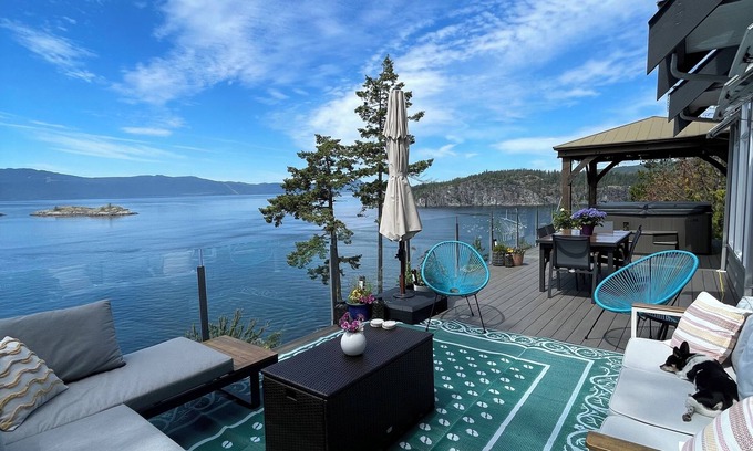 Stunning Oceanfront Home w/Jaw Dropping Sunsets, Water and Wildlife Views is located in Garden Bay. Stunning Oceanfront Home w/Jaw Dropping Sunsets, Water and Wildlife Views provides accommodation, featuring Fireplace/Heating, Entertainment, Pet Friendly, among other amenities. This House features Fireplace/Heating, Entertainment, Pet Friendly, to make your stay a comfortable one.