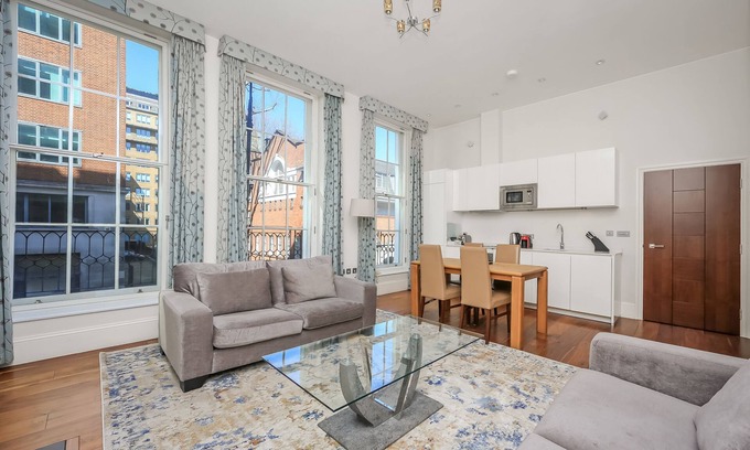 The apartment is 5 minutes walk from the nearest Underground station and is located in the historic Bloomsbury quarter, an area noted for its beautiful garden squares. It was the home of Charles Dickens and the house where he lived is now the Dickens museum. The British Museum is a few minutes' walk away and there is a range of other attractions in the vicinity.