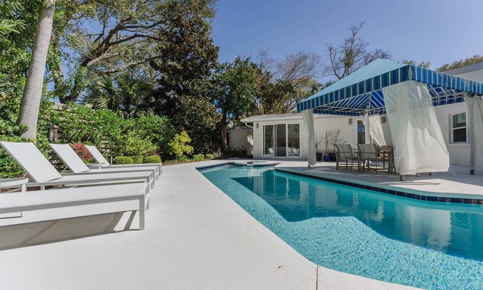 This stunning one-level, 5-bedroom, 3-bathroom home is nestled in the highly desirable East Beach neighborhood on Saint Simons Island. Just steps from the beach, this beautiful retreat offers the perfect blend of luxury and relaxation. Take a dip in the custom-designed pool, which can be heated for an additional fee, relax in the soothing spa, or sip your morning coffee under the charming gazebo that also offers outdoor dining for 6. Sea Grace offers a spacious interior and serene exterior, making it ideal for both peaceful getaways and fun family gatherings. Between its countless amenities and unbeatable location, Sea Grace is the ultimate destination for your coastal escape. We look forward to hosting you soon!