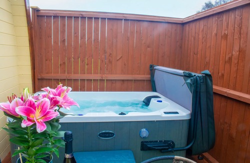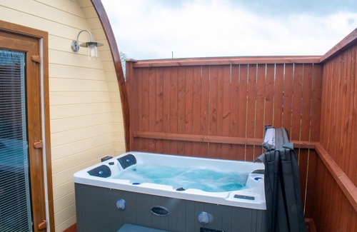 Pods 1,2,3 and 5 are single storey, open plan holiday pods and have a living area with Freeview TV, double sofa bed and French doors leading to a garden and decking area complete with hot tub. They all have a lovely Kitchen and Dining area with breakfast bar, hob, microwave and fridge. They also all have a separate bedroom with double bed and a shower room with shower cubicle, toilet and heated towel rail. Pod 4 is still great but has a few less facilities. Pod 4 now has a Hot Tub!