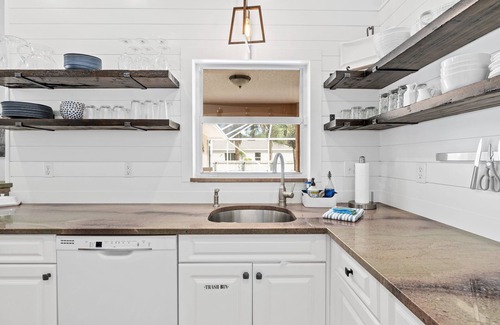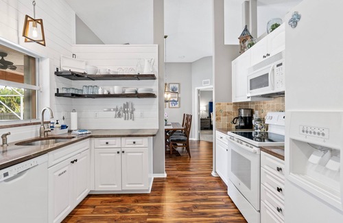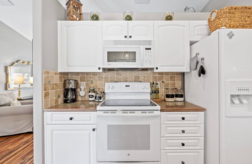 The kitchen is equipped with a full-size stove/oven, microwave, dishwasher & ice dispensing refrigerator as well as a wide ranges of pots/pans, baking dishes, spices and seasonings, cooking oils, and cooking sprays. Also included are many small appliances for your convivence while vacationing: traditional air fryer, Ninja Foodie, traditional toaster, toaster oven, ice crushing blender, hand mixer, electric tea kettle, electric griddle, waffle maker, microwave popcorn maker, crock pot, rice cooker, traditional coffee machine, as well as a single serve Kruerig KCup machine.