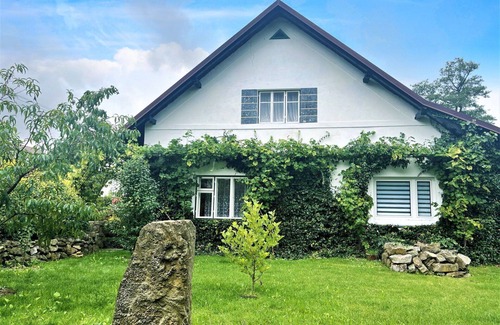 This cosy, rustic country house named "Kern" is a detached vacation rental situated at an elevation of 400 meters above sea level in Nové Město Nad Metují, Czech Republic. It offers a fenced private property spanning 1,200 square meters, complete with a garden lawn, trees, and a meadow. The property boasts a seasonal swimming pool (8 x 4 meters, with a depth ranging from 120 to 180 centimeters, available from May 16 to September 26), making it an ideal destination for your holiday rental.