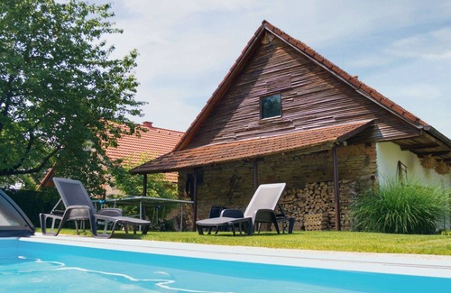 Libel, a peaceful village nestled in the foothills of the Orlicke Mountains, is home to a cozy country house built in 1834 and meticulously renovated in 2021. This charming vacation rental boasts vaulted ceilings, a private swimming pool (3 x 6 m, available seasonally from May 1 to October 31) with salt water and a shutter cover, an outdoor shower, a terrace, a garden with furniture, a barbecue area, and a children's playground (swing, sandbox). Additionally, the property offers amenities such as a washing machine, bicycles (3), Internet WiFi, parking on the premises, and a tennis court within 300 meters.