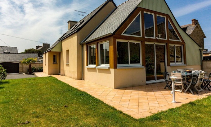 Single-family house "L'Abri des Moussaillons". In the district of La Fourberie, 400 m from the sea, 400 m from the beach. Private: garden 500 m2 (fenced). Boules, garden furniture, parking on the premises. Shop 2.2 km, grocery 1.4 km, supermarket 1.4 km, shopping centre 4.5 km, restaurant 30 m, bar 1.3 km, bakery 1.4 km, café 1.3 km, bicycle rental 2.2 km, railway station "SNCF de Saint Malo" 14 km, ferry "Gare maritime du Naye" 13 km, sandy beach "La Fourberie" 400 m, indoor swimming pool 2.7 km, thermal baths "Thalassa de Dinard" 1.6 km. Sports harbour 3.7 km, golf course (18 hole) 4.5 km, sailing school 1.6 km, indoor tennis centre 3 km, minigolf 1.5 km, riding stable 1.2 km, sports centre 2 km. Nearby attractions: Grand Aquarium de Saint Malo 10.4 km, Saint Malo et ses remparts 12.4 km, Cancale et ses huitres 25.7 km, Dinan cité médiévale 24.2 km, Cap Fréhel et Fort La Latte 33.5 km, Le Mont Saint Michel 60 km. The keys‘ handover takes place by the agency Interhome in Dinard, 3 km.