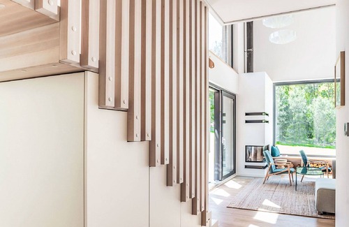 The house offers modern and tasteful furnishings. The terrace measures 20 square meters and includes terrace furniture, 6 deck chairs, and a sitting area, allowing you to enjoy the view of the valley and the forest. Internet (WiFi) is available for your convenience. Reserved parking is available at the house. Please note that the sleeping facility in the open gallery is a chaise lounge, and some sleeping areas are located in an open-plan area (gallery, alcove, etc.) instead of an enclosed bedroom.